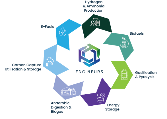At Engineurs, we’re at the forefront of supporting operators, project leaders, investors, and technologists across five crucial decarbonisation technology pathways. Our team of dedicated experts specialises in developing and advancing novel technologies aimed at significantly reducing or eliminating greenhouse gas (GHG) emissions. We place a special emphasis on First Of A Kind (FOAK) projects, leading the journey from conceptualisation to operational excellence.